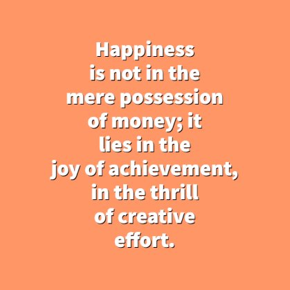 1. “Happiness is not in the mere possession of money; it lies in the joy of achievement, in the thrill of creative effort.” —Franklin D. Roosevelt